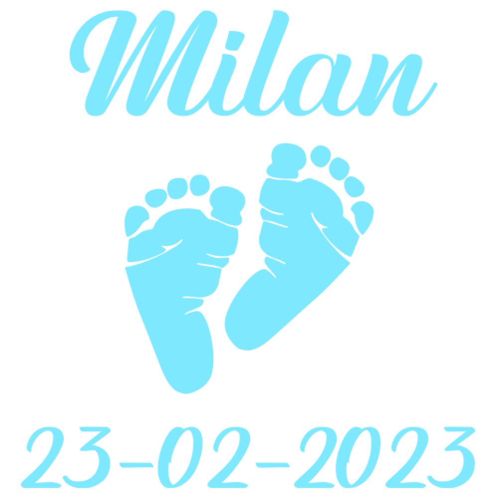 Leuke geboortesticker met naam en geboortedatum.